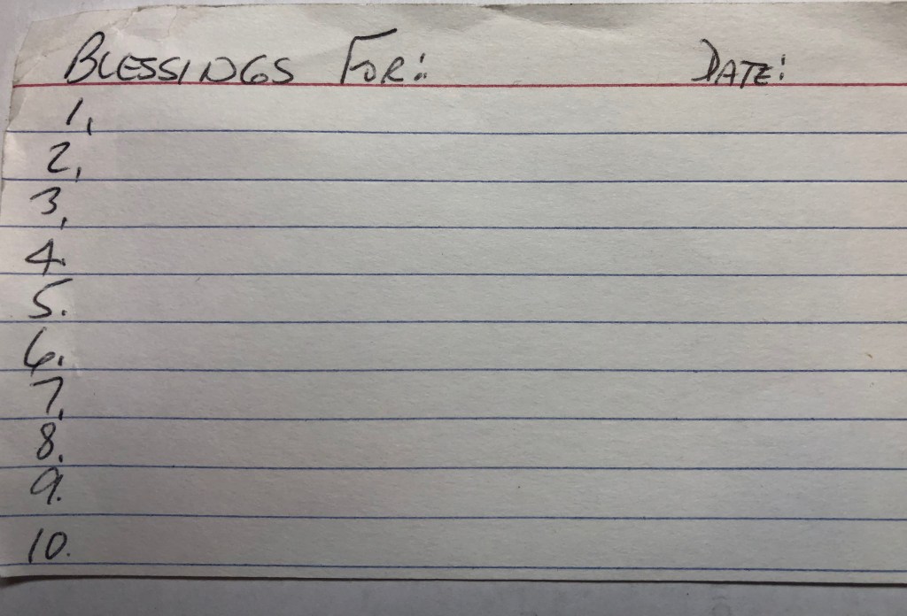 Say: Counting our blessings helps relieve our worries. Any blessings to be thankful for today? Is salvation one of them? Record on the Blessings card for them.